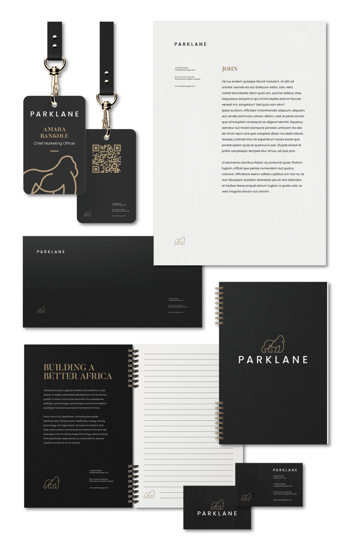 To elevate Parklane’s brand and reflect its premium positioning, I reimagined their original wordmark, which was clean but lacked distinction. I refined the letterforms for clarity and introduced character by reshaping the two “A”s with rounded crossbars that evoke bridges which symbolize Parklane’s role in connecting community and innovation through architecture. To ground the identity in its African roots, I created a refined line-work brandmark inspired by the silverback gorilla, a symbol of strength, leadership, and pride tied to Rwanda. The result is a sophisticated, memorable visual identity that carries both meaning and presence across global markets.