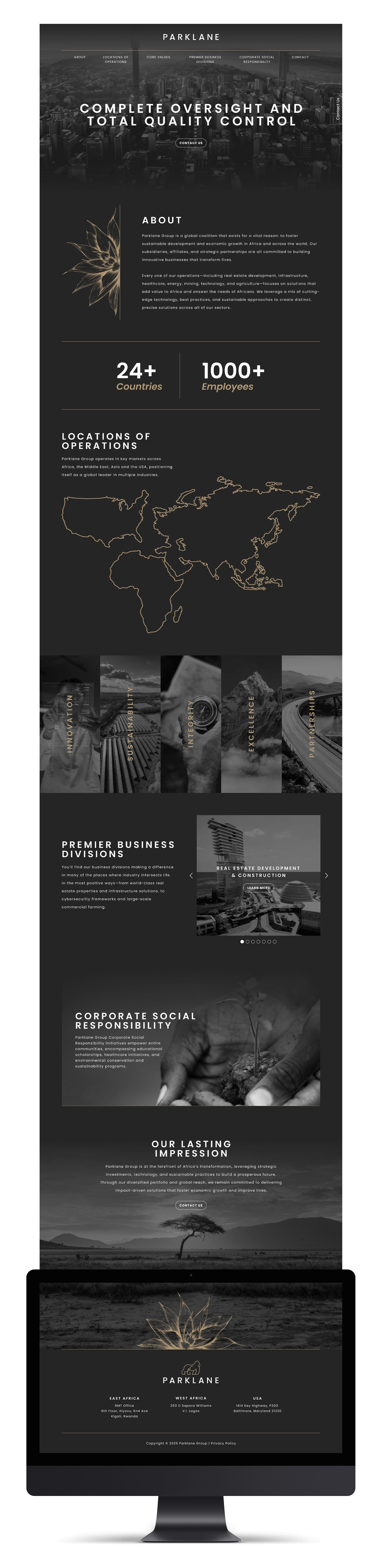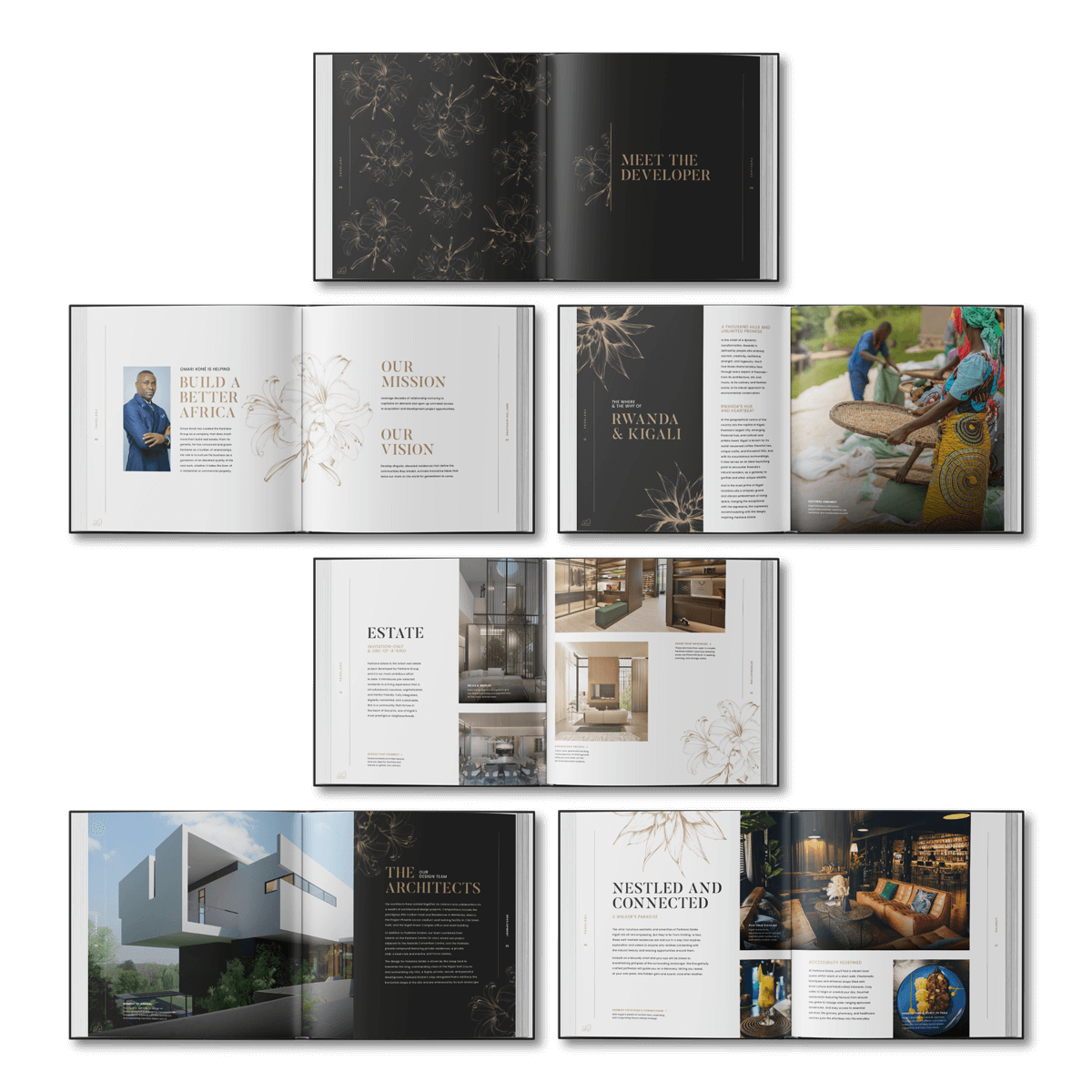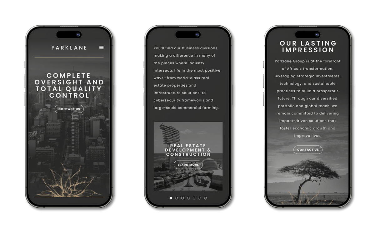 Parklane’s initial request was to design a high-end coffee table book showcasing their development work to investors and government leaders. The goal was to position their portfolio as a strategic invitation to collaborate. As conversations progressed, it became clear that the brand needed more than a printed piece. Parklane was preparing for global expansion, and their identity had to reflect the premium quality of their work, unify their diverse business segments, and resonate with international audiences while staying rooted in the authenticity of their African origins.
